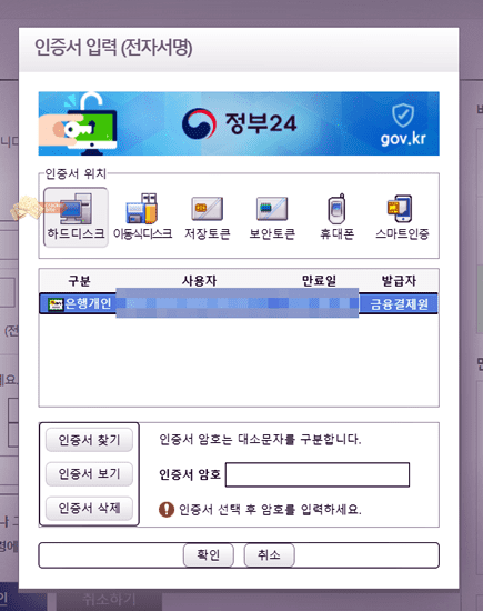 공동인증서의 경우, 주거래 은행에서 은행거래용 공동인증서를 발급받는 것이 가장 편리한 방법인 것 같습니다. 혹은 금융기관이나 범용 공동인증서도 이용가능합니다.