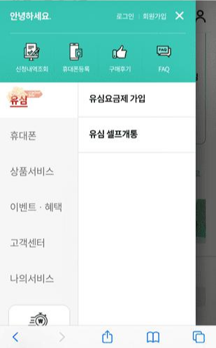 2. 알뜰폰 회사 홈페이지에서 요금제 가입신청 - 본인인증 및 요금제 선택 과정
