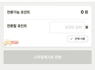 전환할 포인트를 입력하거나 전체사용 선택하고 스마일캐시로 전환을 선택합니다.