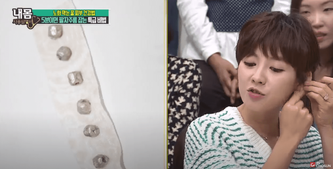 귀의 근육을 풀어주면 얼굴의 근육도 풀어집니다. 지압 테이프에는 작은 지압볼이 붙어있는데 구할 수 없다면 일반 테이프에 쌀알 등을 붙여서 사용해도 좋습니다.