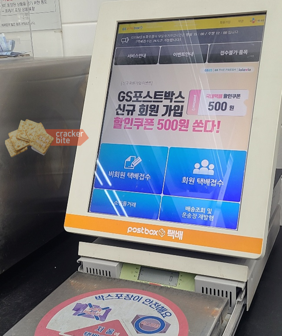 참고로 편의점에 보낼 물품을 들고가서 키오스크에 배송정보를 입력해야 하는데 이때, 편의점 안에서 이름, 발송자 정보, 배송자 정보 등등 입력하느라 시간이 꽤 걸려요.