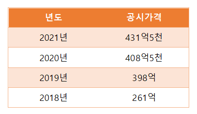 이 공시 가격은 지난해 408억 5천만원에서 5.6% 상승한 것으로 전년도와 비교했을 때도 계속 상승세입니다.
