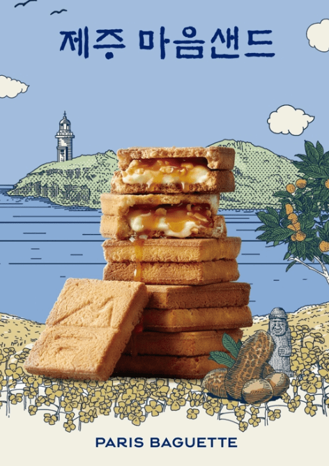 제주공항 파리바게트에서만 구매할 수 있는 마음 샌드에는 우도 땅콩이 들어있어요.