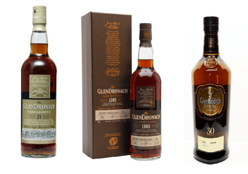 끝판왕으로 간다면 글렌드로낙 21년산, 글렌드로낙 1993, 글렌피딕 30년산이 인기템. 최근엔 카발란 돌풍이 불고 있는데 이 중 카발란 올로로소 쉐리오크와 솔리스트 쉐리가 인기.