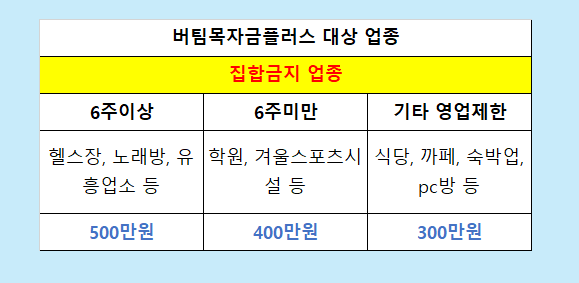 1. 6주이상 적용된 곳 (지속) - 실내 체육시설, 노래방 등, 500만원