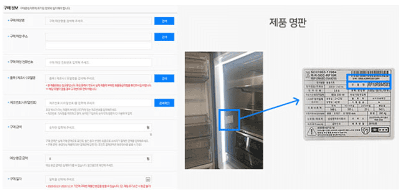 전기요금 청구서 또는 한전 고효율 가전제품 구매비용 신청 홈페이지에서 자격대상이 되는지 확인합니다. 본인인증-개인정보 수집약관 동의 후 구매정보와 제품정보 그리고 환급계좌 정보를 입력하여 신청합니다.