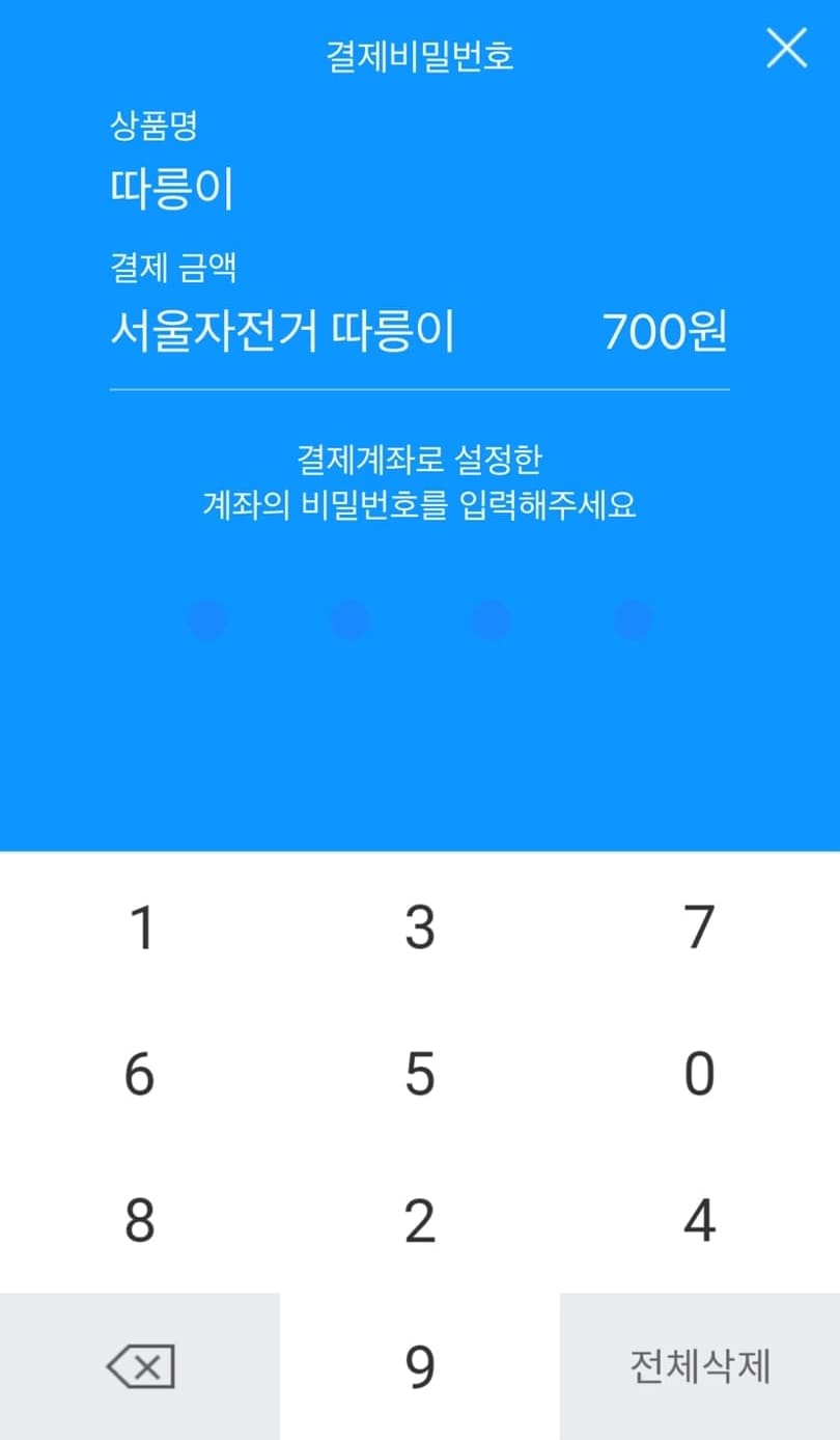 이때 선택한 제로페이 참여앱을 설치하고 거기서 제로페이 이용등록을 해주고 따릉이앱으로 들어가야 QR코드가 읽혀집니다. 제로페이로 결제하는 순서는 아래와 같습니다.