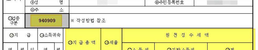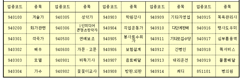 업종코드는 사업소득 사업장에서 발급한 지급명세서를 참고할 수 있습니다.