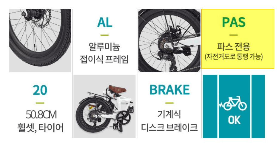- 페달과 전기모터의 동시 동력으로 움직이며, 전동기만으로 움직이지 않을 것 (페달보조방식 PAS)