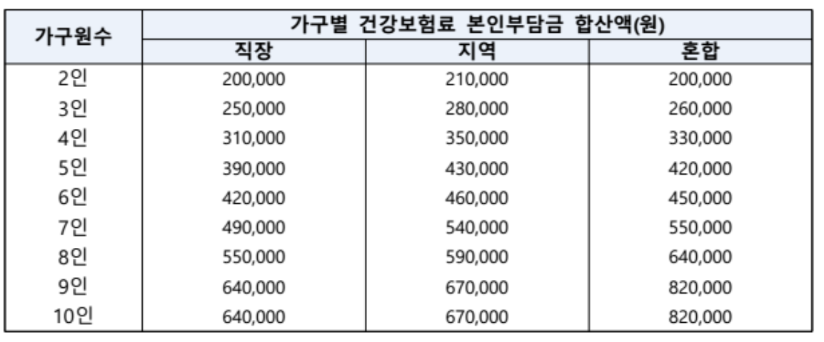 중위소득 180% 월소득 기준 건강보험료 본인부담금 (국민지원금용)