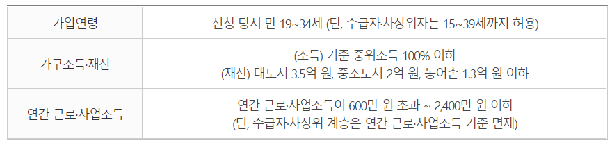 신청 당시 만 19세~34세입니다. 수급자 및 차상위 청년은 15~39세까지 허용합니다. 참고로, 청년내일저축계좌는 '22년 하반기 신청을 받기 시작할 예정이니 그 때를 기준일로 나이를 계산해야 합니다.