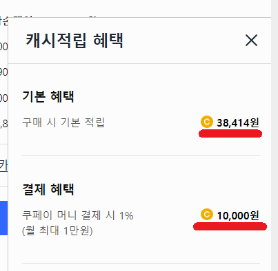 위의 금액을 결제하면 자동으로 38,414원의 캐시가 적립이 되는데요. 적립된 캐시로 폰케이스나 액정보호필름 등 다양한 악세사리 구입에 사용할 수 있는 알짜 캐시입니다. 만약 결제방식을 쿠페이머니로 한다면 10,000원 추가되어 총 48,414원이 적립됩니다. 현재 쿠팡에서는 갤럭시s24 악세사리 30% 세일 중이라고 하니 폰 구매후 한번 둘러보시기 바랍니다.