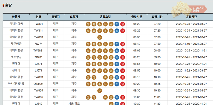 대구제주항공권 - 화요일, 수요일, 토요일을 공략하세요