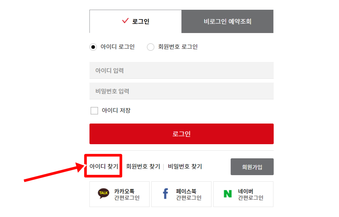아시아나 홈페이지에 로그인합니다. 회원가입이 되어 있지 않다면 새로 가입하셔야 하고 혹시 모르니 아이디 찾기도 해보세요. 티켓팅할때 자동으로 되어 있을 수도 있거든요.