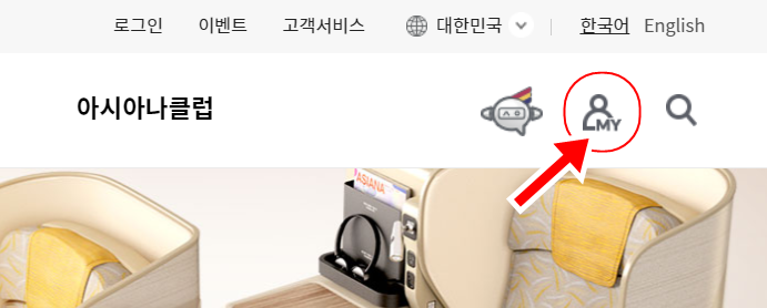 로그인 후 열리는 메인 홈페이지에서 상단 오른쪽의 [my] 를 선택합니다. 자신의 멤버등급과 적립된 마일리지 금액이 나옵니다.