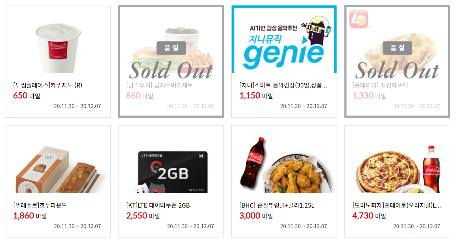 - 매주 변경되는 상품을 마일리지로 결제하여 구매하는 서비스입니다