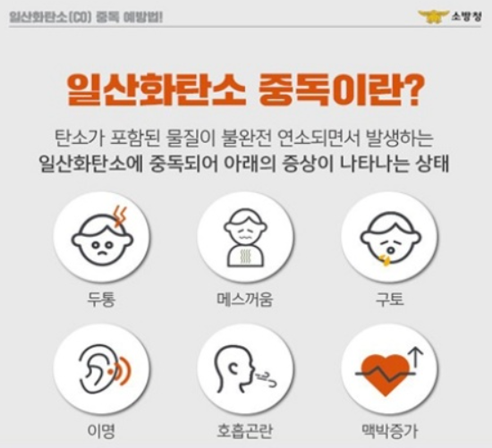 하지만 보일러나 난로로 인해 장기간에 걸쳐 흡입하게 되면 경미한 중독이 되는데 이를 인지못하고 잠이 들면 사망할때까지 계속해서 일산화탄소를 흡입할 수 있어 치명적입니다.