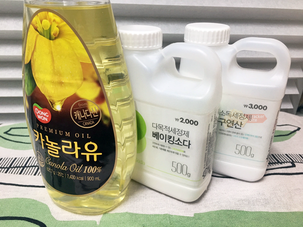 연마제 제거에 사용하는 세척제는 식용유, 베이킹소다 (과탄산소다), 식초(구연산) 입니다. 이 세가지의 역할이 다 다르기 때문에 순서대로 세척을 진행하는 것이 중요합니다 이번에 새로 들이게 된 올스테인레스 전기포트의 연마제를 제거해보겠습니다.