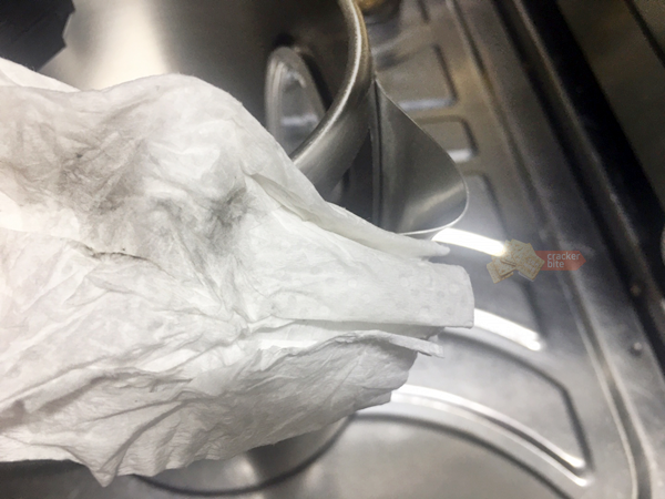 위의 과정을 끝낸 후 제품 한 부분에 식용유를 묻혀 닦아보아 연마제가 잘 제거 되었는지 확인합니다. 만약 나온다면 위의 과정을 한번더 진행해주셔야 합니다.