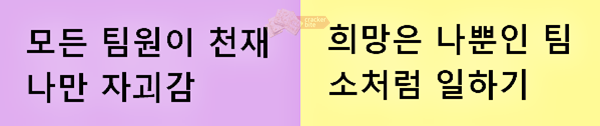 너무 힘든 선택이에요. 나만 자괴감들어도 모든 팀원이 천재라면 회사에 희망이 있는거겠죠? 제 선택은 모든 팀원이 천재입니다.