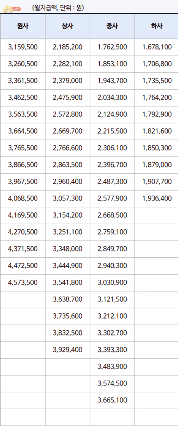 원사부터 상사, 중사, 하사의 2021년 봉급표는 아래와 같습니다.