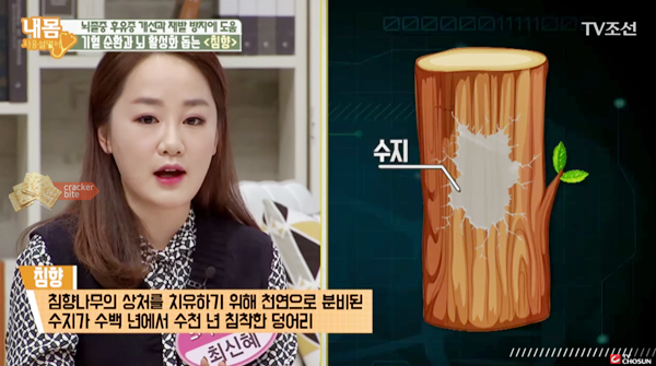 최근 TV조선 ‘내 몸 사용 설명서’에서 침향이 소개되어 화제가 되고 있는데요. 침향은 팥꽃나무와 침향나무가 각종 세균감염으로부터 자신을 보호하기 위해 혹은 자가치료를 하기 위해 분비하는 수액입니다. 이 수지가 오랜 시간 굳어서 침향이 되는거죠.