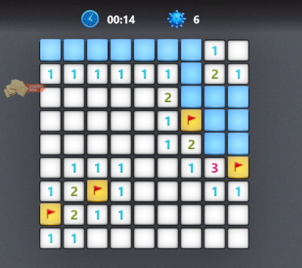 이렇게 하나하나 숫자와 힌트를 두고 눌러가다보면 지뢰를 밟지 않고 10개 모두에 깃발을 꽂을 수 있습니다. 재밌게 즐겨보세요.