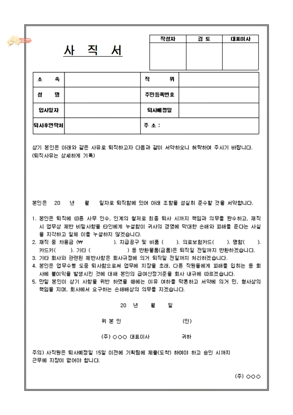 사직서 쓰는법 꼭 들어가야 하는 내용