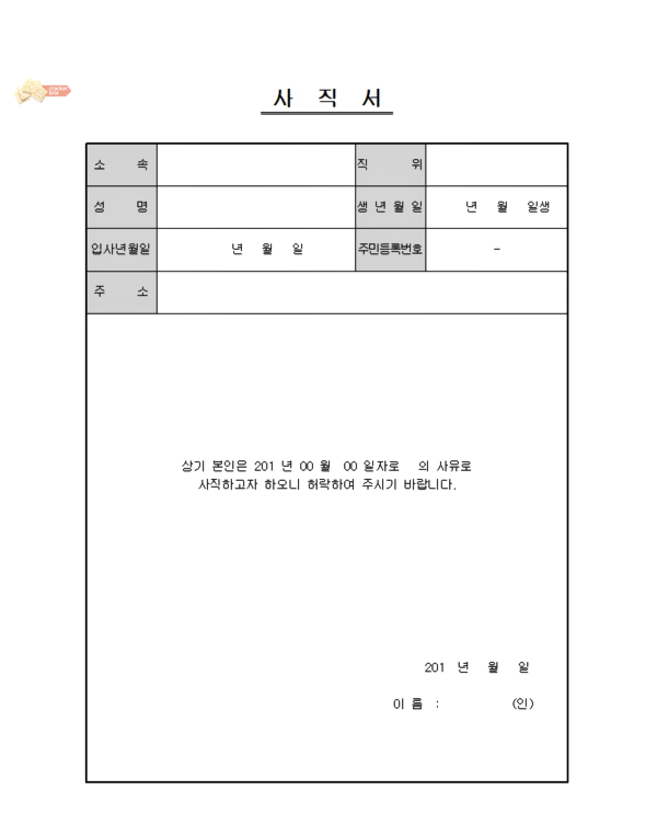 편집이 가능한 사직서 양식 hwp 파일은 아래에서 다운로드하시면 됩니다.